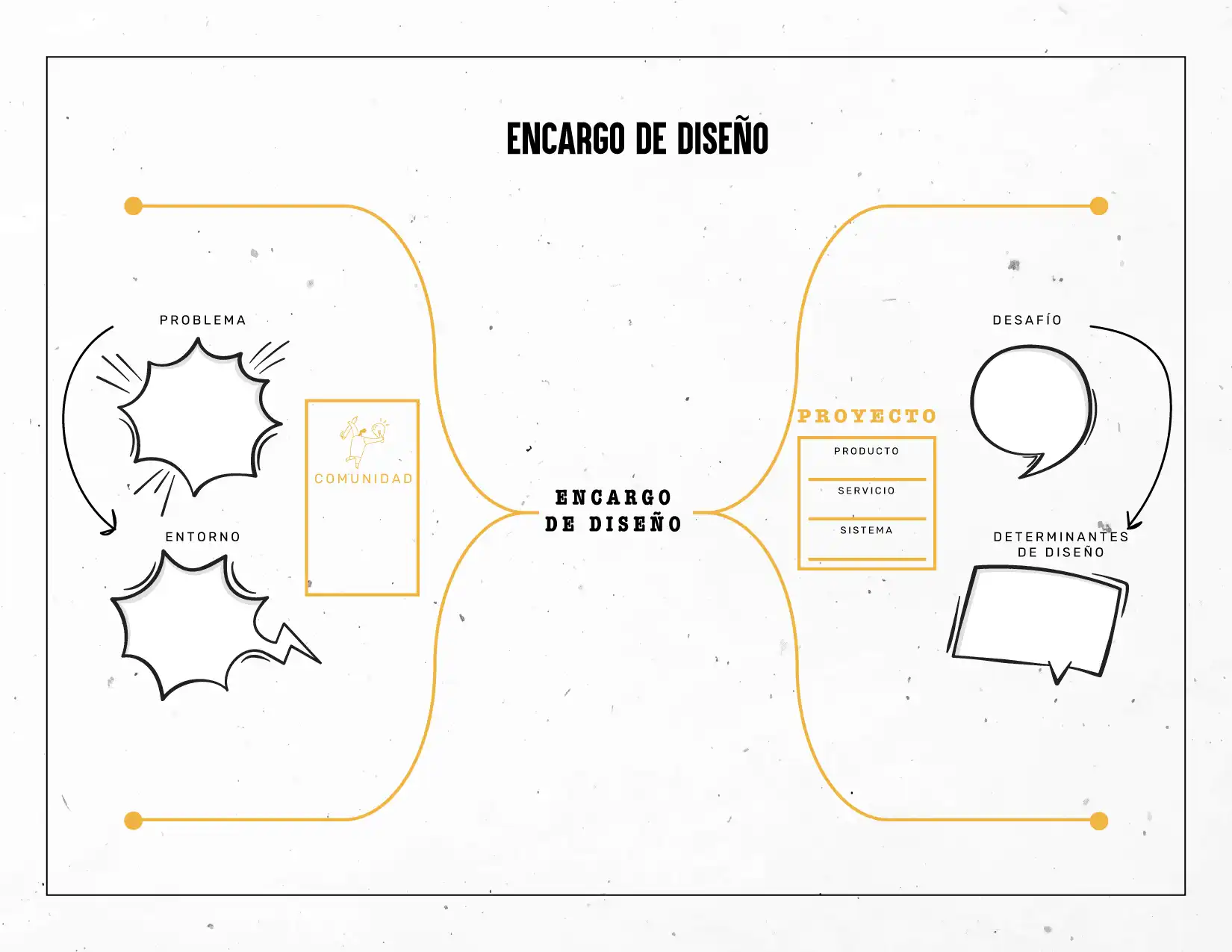 En la fase descubrir buscamos crear un lienzo que permita vincular la descripción de los problemas y desafíos con los lineamientos de diseño. La mayoría de los proyectos de diseño comienzan con un encargo, donde se describe a grandes rasgos desde el punto de vista del cliente el trabajo que debe realizarse, con sus parámetros y plazos hasta las determinantes que tendrá el resultado final.