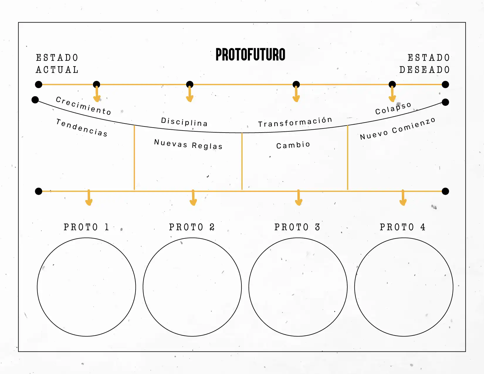 En DIGO hemos creado este mapa que nos guía por un camino de escenarios futuros basados en el estudio realizado por Jim Dator, docente de la universidad de Rikkyo. Este ejercicio permitirá prototipar soluciones al desafío planteado basándose en el diseño especulativo.